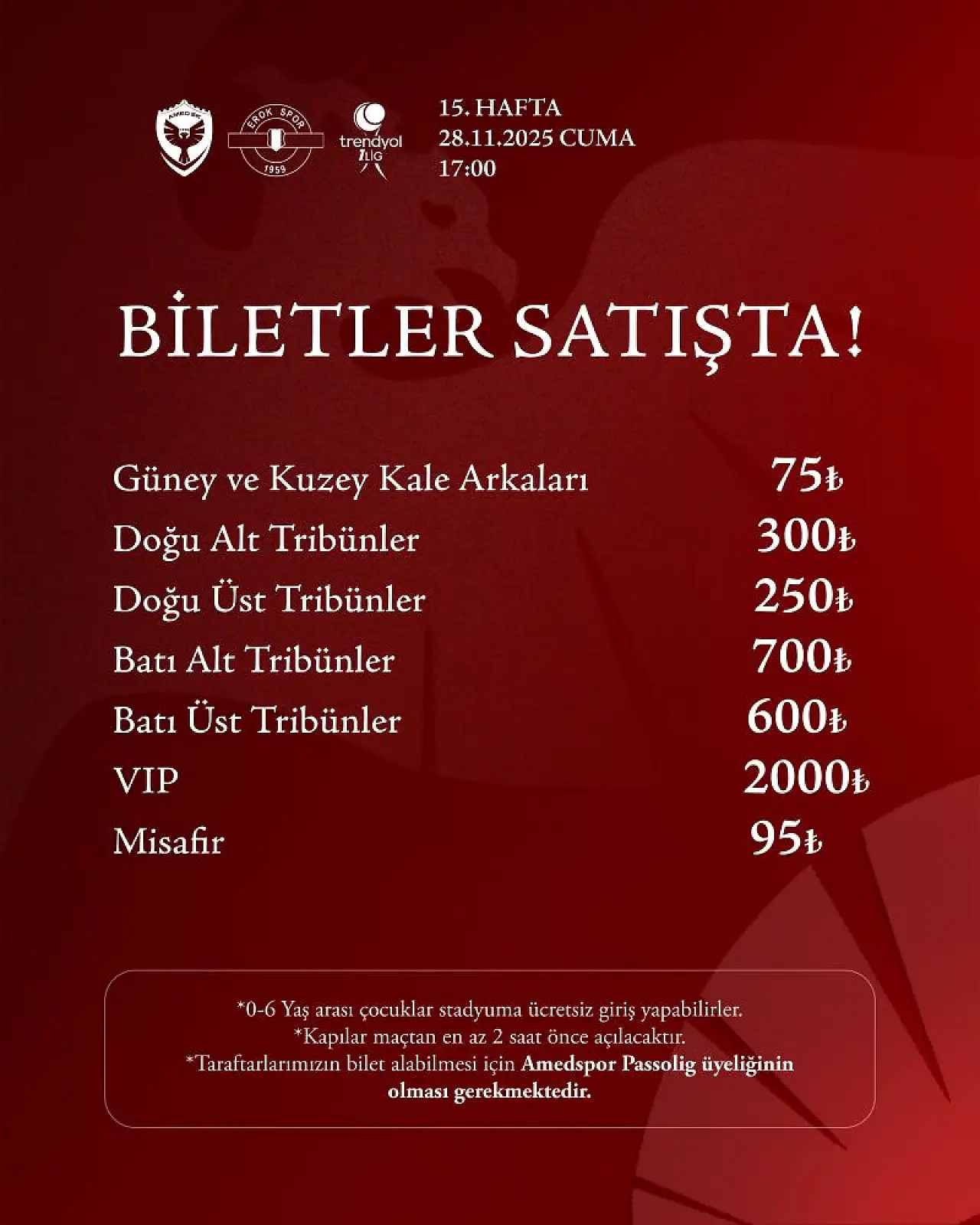 Amedspor'un iç sahada oynayacağı önemli maçın biletleri satışa çıktı. Kulüp, tribün fiyatlarını açıklayarak taraftarı erken giriş yapmaya ve takıma destek olmaya çağırdı.